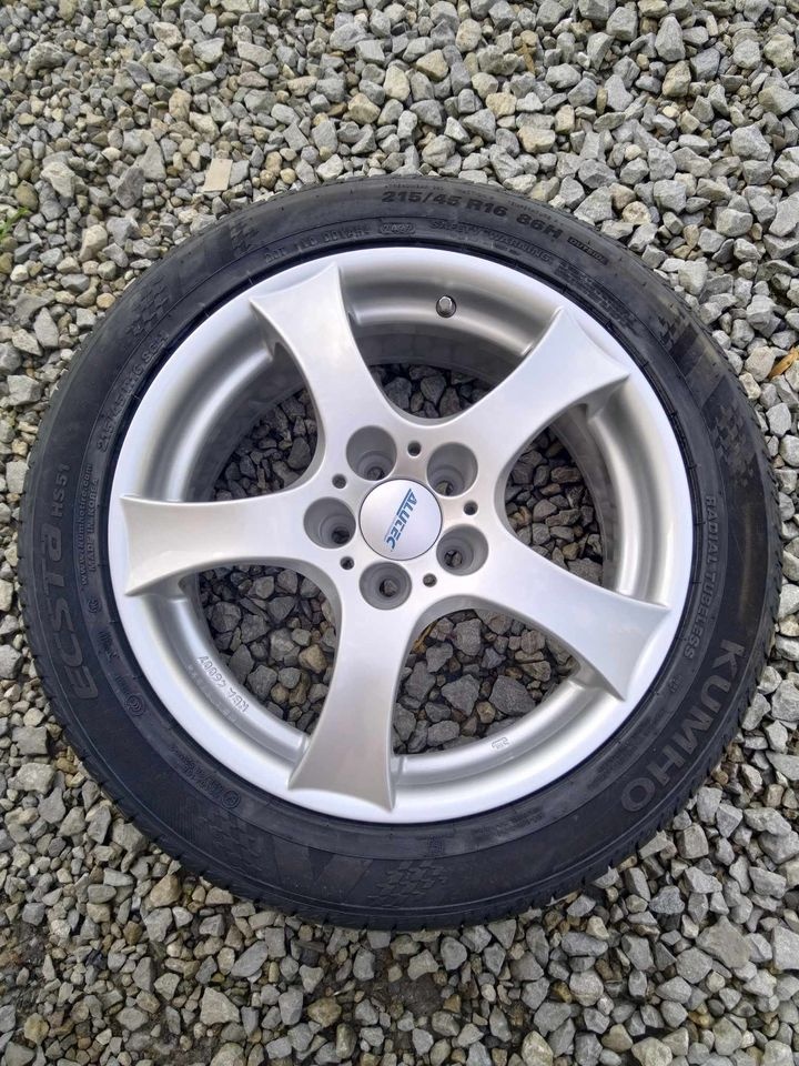 Sada nejazdených alu diskov ALUTEC Germany 5 x 100 7J 16" ET 38 + nové letné pneu KUMHO ECSTA HS 51 215/45 16 86 H,sada obutá,vyvážená + príslušenstvo,strediace krúžky + skrutky...komplet je za 550...vhodné na ŠKODA FABIA 3,ŠKODA RAPID,VW POLO,SEAT IBIZA,priveziem po dohode ak budem mať cestu..