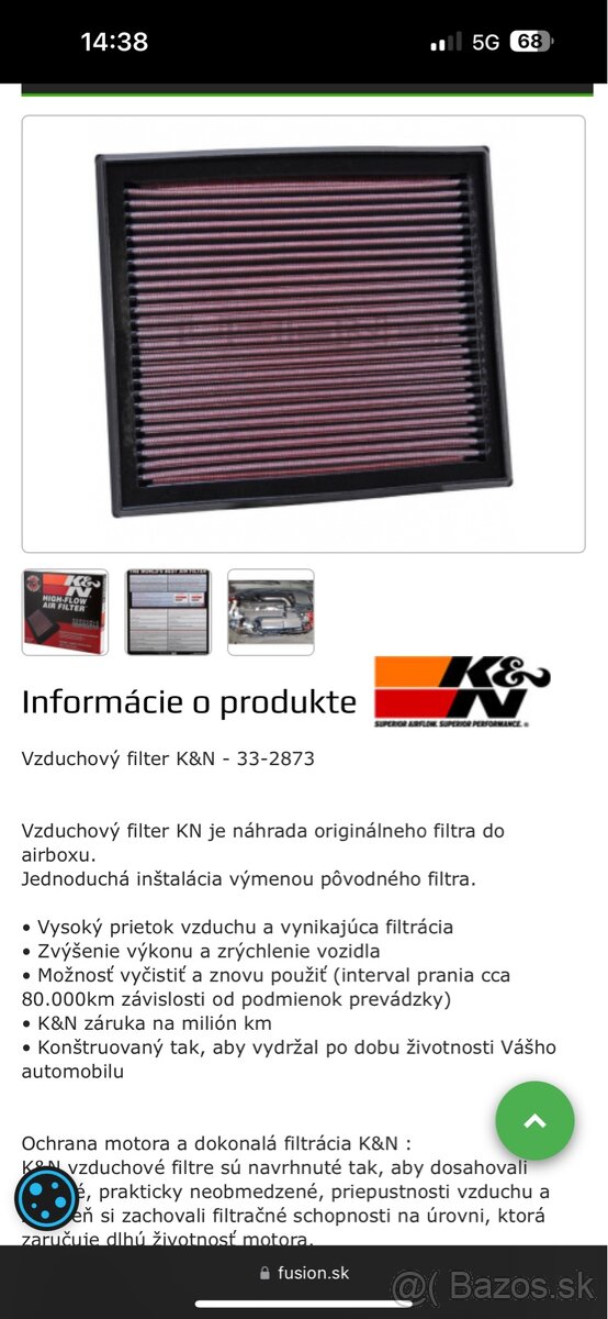 Predan K&N vzduchovy filter poživany ford mondeo pasuje aj do inych aut …volvo T5 na stranke fusion.sk sa da pozriet konfiguracia podľa typu auta
