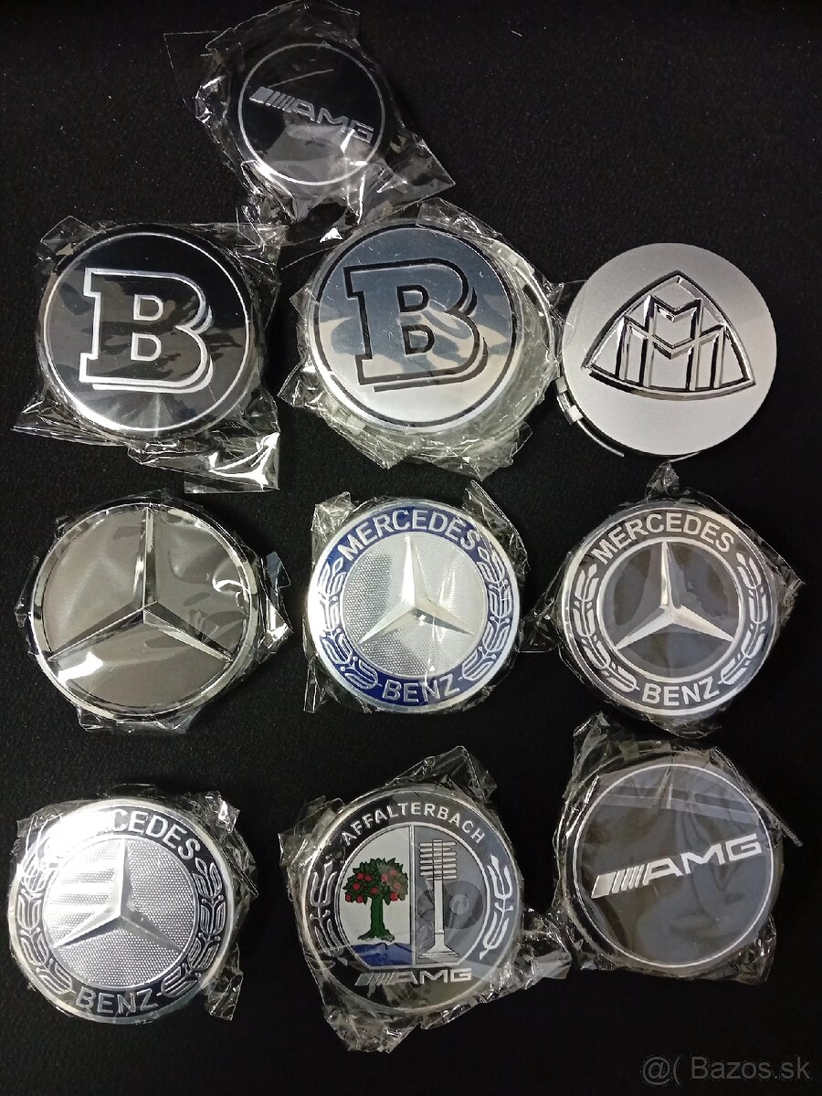 Predám stredové krytky resp. puklice Mercedes vhodné aj na vozidlá Mercedes, Maybach, Brabus. Cena za sadu 15€.
