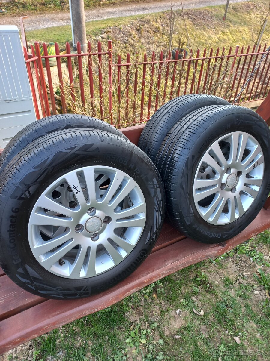 Predám hliníkové kolesá 4ks, na Opel Corsa E s letnými pneumatikami 185/65 R15 H Osobný odber.