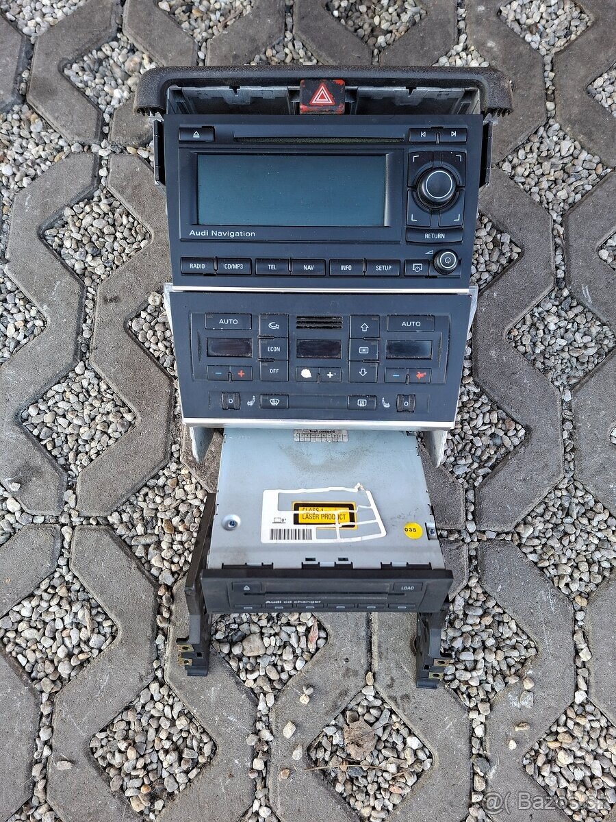 Radio s navigaci original Audi A4 B7 kompletni panel včetně uchyceni radio a klima cd měnič dvd kod k radiu.