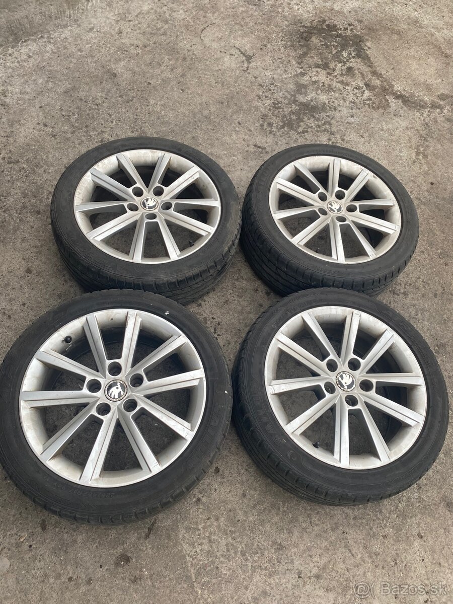 Zdravím, predám letnú sadu R17 originál Škoda disky TERON je možné použiť na väčšinu vozidiel koncernu Audi, Mercedes, VW, Škoda, Seat
