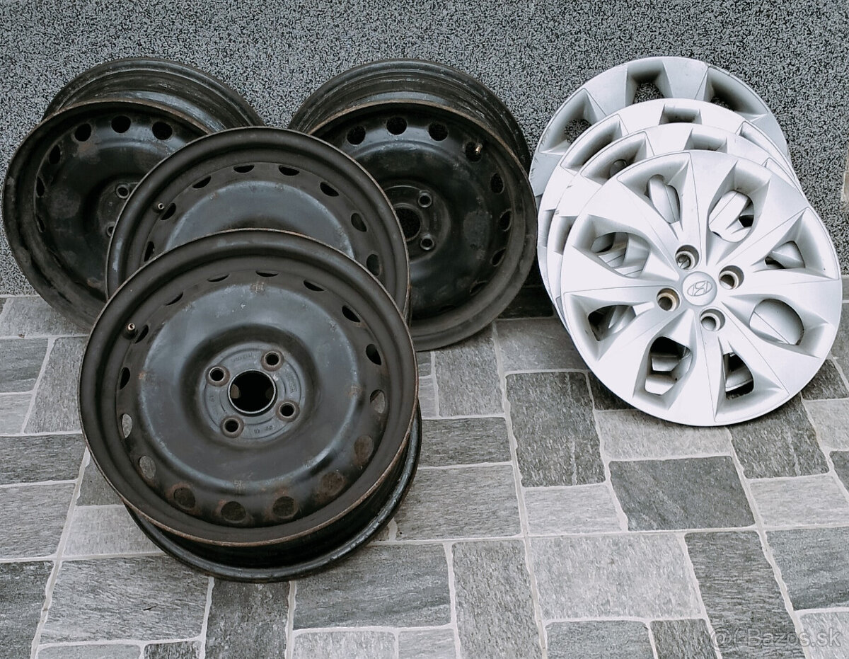 Predám sadu štyroch plechových diskov rozteč: 4 x 100 ; 6 J R15, ET 47, stredová diera 54,1. Disky sú používané, rovné a vhodné na Toyota Yaris, Hiunday a ďalšie. Cena je 25,- € za komplet, volať na 0949 188 613. Pri rýchlej dohode – bonus plastové kryty na kolesá – viď foto. Možnosť pridať piate koleso ...