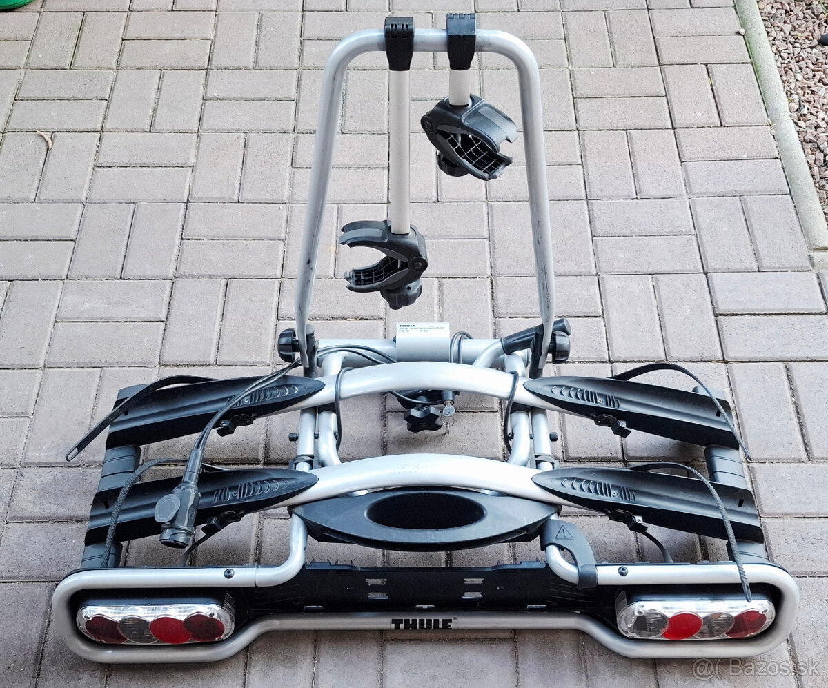 Predam nosič dvoch bicyklov Thule na tažne.Nosič je plne funkčny určeny na prepravu dvoch bicyklov.Nosic sa da zamknut k tažnemu tiež sa daju zamknut bicykle.Nosič s bicyklami je sklapatelny pre lahky pristup do kufra.