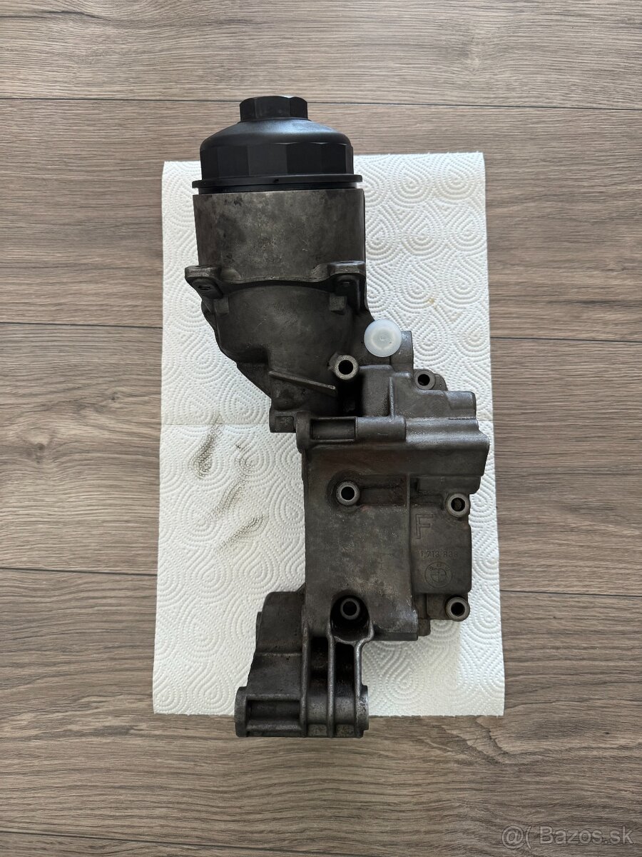 Domček olejového filtra na motor M54 - 11 42 1713 838 - pridám k nemu nový spätný ventil, tesnenie a podložky - 50€