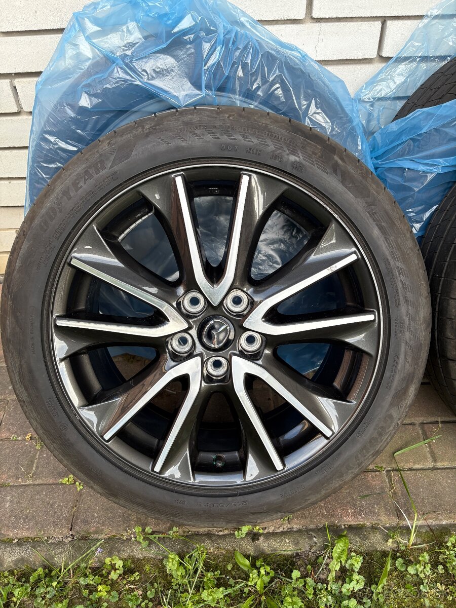 Hliníkové disky Mazda - [28.3. 2026]Predám vo veľmi dobrom stave originálne disky Mazda aj s originálnymi senzormi tlaku, vhodné pre Mazda cx-3 cx-30 cx-5. Rozteč 5x114,3. 7Jx18 ET45. Na diskoch sú letné pneumatiky Toyo 215/55 r18 vzor 90%. Tie sú k diskom grátis.