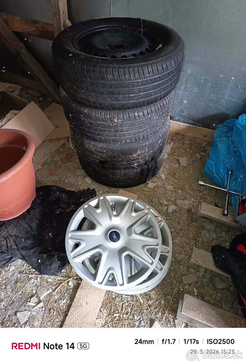 Pneumatiky spolu s plechovymi diskami z Fondu Galaxy takmer nejazdene