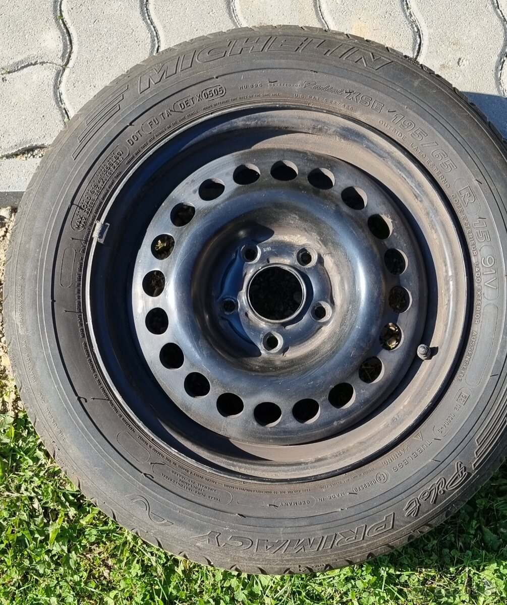 Predám 4x original disky plech. na Renault Laguna II., roztec 5x108 s pneum Michelin Primacy 195/65 R15 (na dojazd). FORD,SAAB,VOLVO