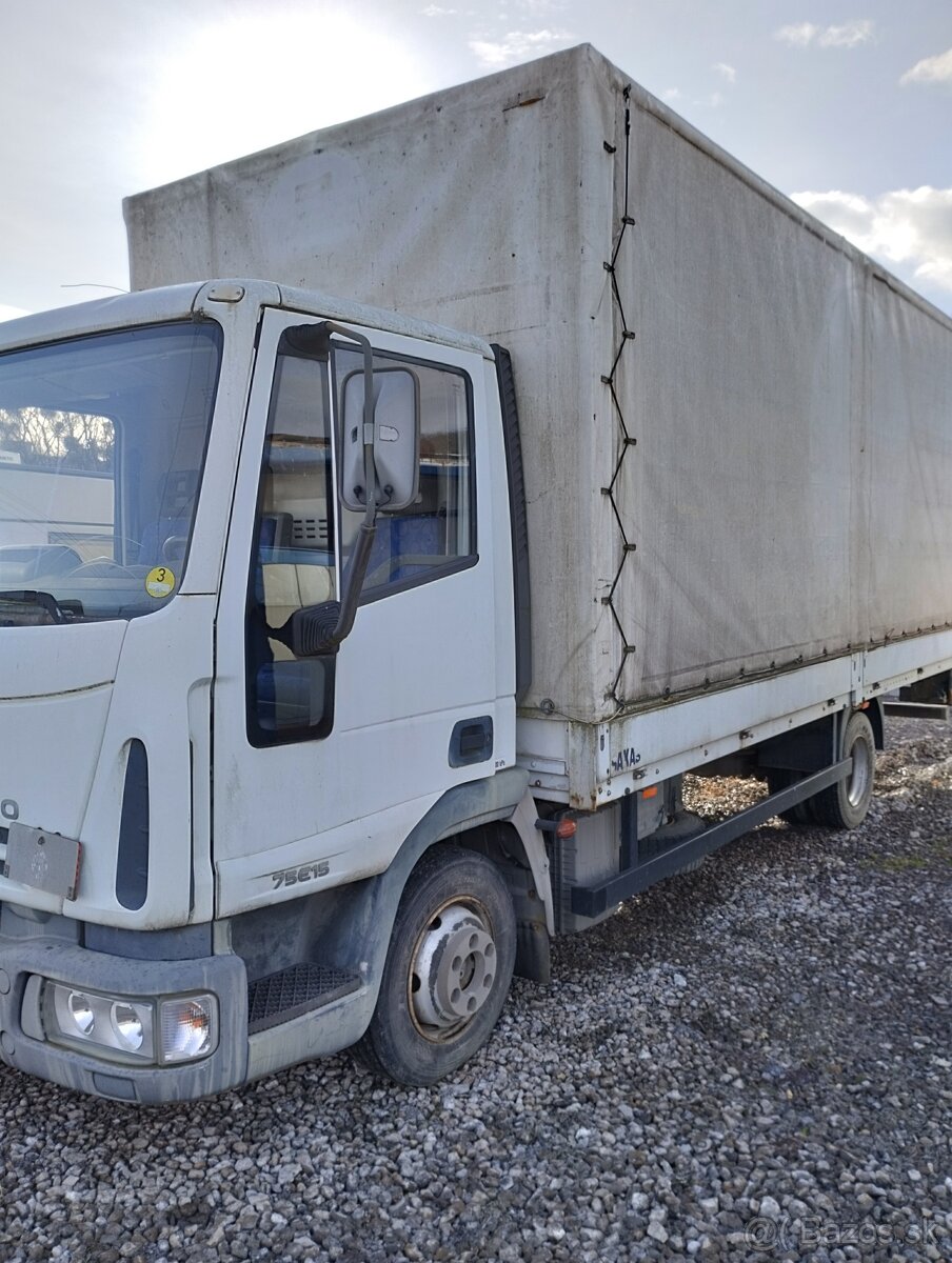Predám nákladné auto N2 IVECO Eurocargo 75e15 s hydraulickým čelom. Rok výroby 2006, dovoz z Nemecka rok 2011. Obsah motora 4.0, výkon 110kW,MT 5. Najazdené kilometre - 133 000 km - viem dokladovať. Celkové rozmery 7,9x2,5x3,5m. Rozmery ložnej plochy 6x2,4m. Celková hmotnosť 7,5t. Nové batérie, gumy 80%, funkčné čelo, platná STK.