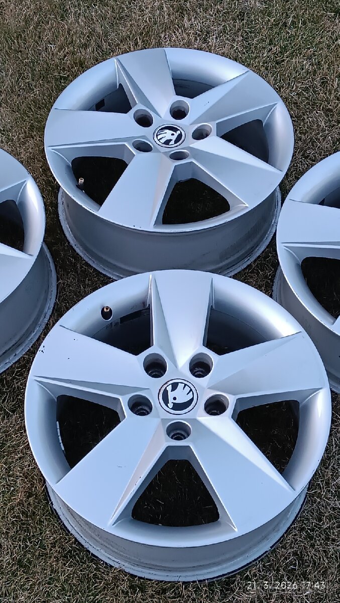 Ponúkam originál kolesá elektróny zo Škoda Octavia III, 16", rozmer 6,5Jx16H2 ET46. Pasujú na mnoho modelov áut, minimálne z VW group. Disky sú používané, no vo výbornej kondícii, neboli pokrivené ani ináč poškodené.
