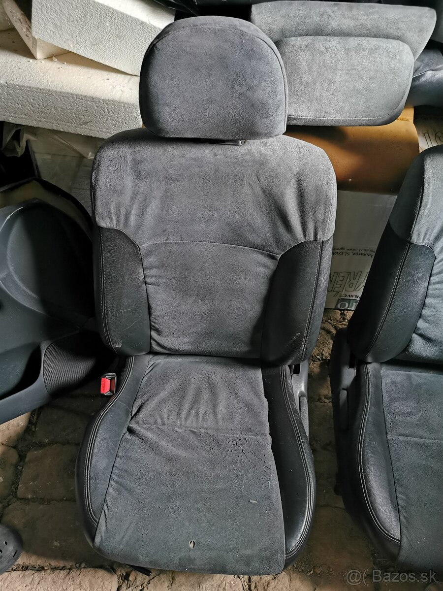Predám alcantaru polokožený interiér,sivej farby,predné sedačky s kolajnicami,zadné sedacky,predne+zadne tapacire,laktova opierka a manzeta radiacej paky, volant s alcantara doplnkom cena 220eur bez laktovej opierky,stav vidno na fotkách.
