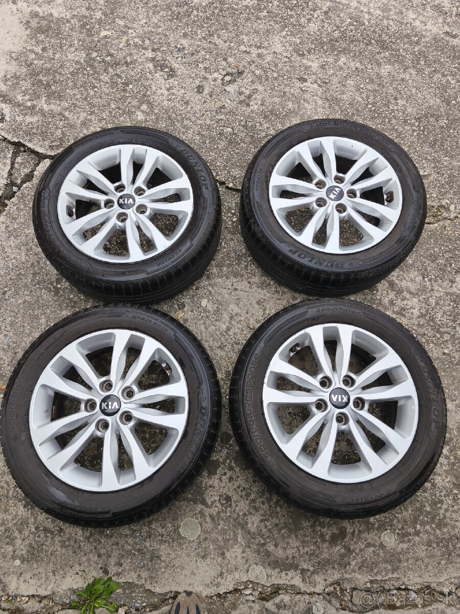Originál hliníkové disky na Kia cee'd, Dunlop letné pneumatiky ako nové, 205/55 R16 91H miestami poskrabane od obrubnikov ako vidieť na fotkach, rok výroby 2025, dezén ako nový 7mm, rozteč dier 5x114,3 stred 67,1 - 6,5Jx16/ET50 , osobný odber Bratislava Ružinov