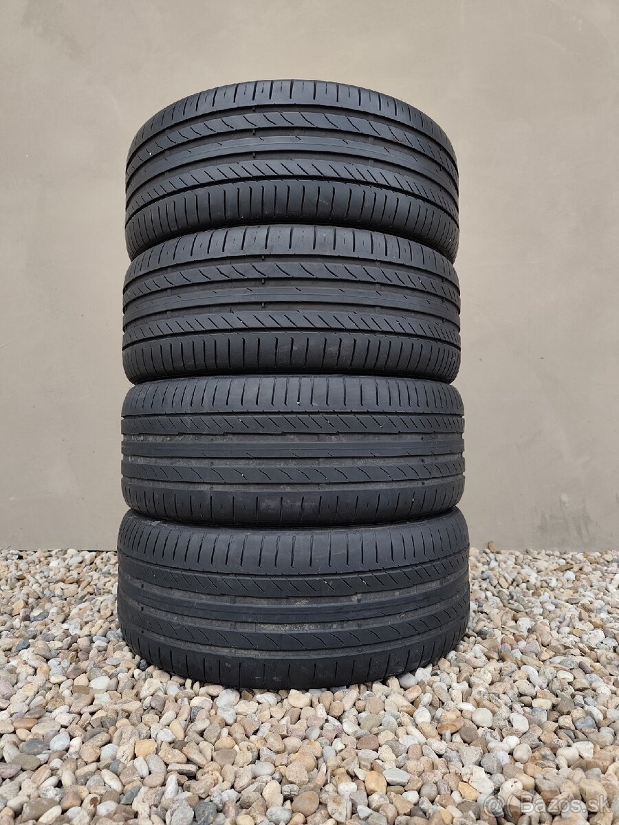 Predám kvalitné letné pneumatiky Continental ContiSportContact5 v rozmere 245/45 R19 102Y XL s dezénom prevyšujúcim 2x 5mm a 2x 3.5mm, predávam 2 lepšie kusy a 2 slabšie pridám ako bonus na sezónu. Cena rovnakej novej pneumatiky je cca 180€ za kus, tieto predám za cenu 40€ za kus. Osobný odber možný v Bratislave alebo Trnave zaslanie tak isto možné.