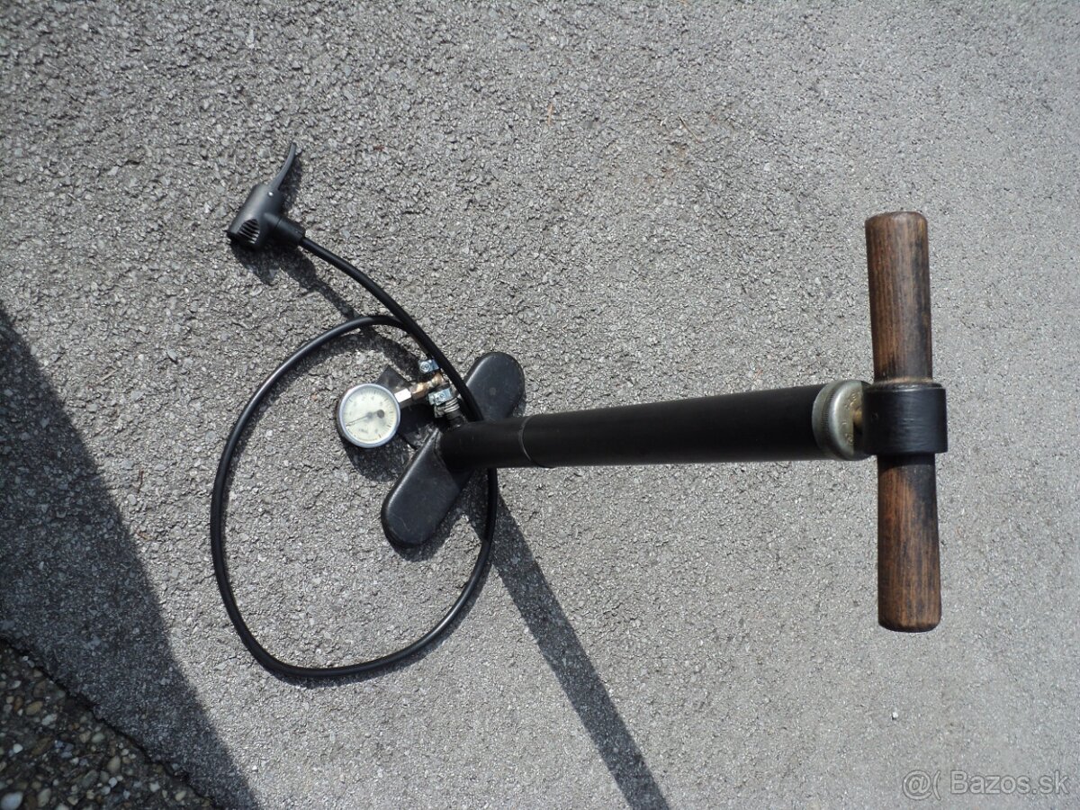 1, Pumpa na pneumatiky, výroba CCCP, zachovalá, nálezový stav.Manometer nefunkčný ale aj tak to nie je originál - bol dorábaný.Cena 15 €.