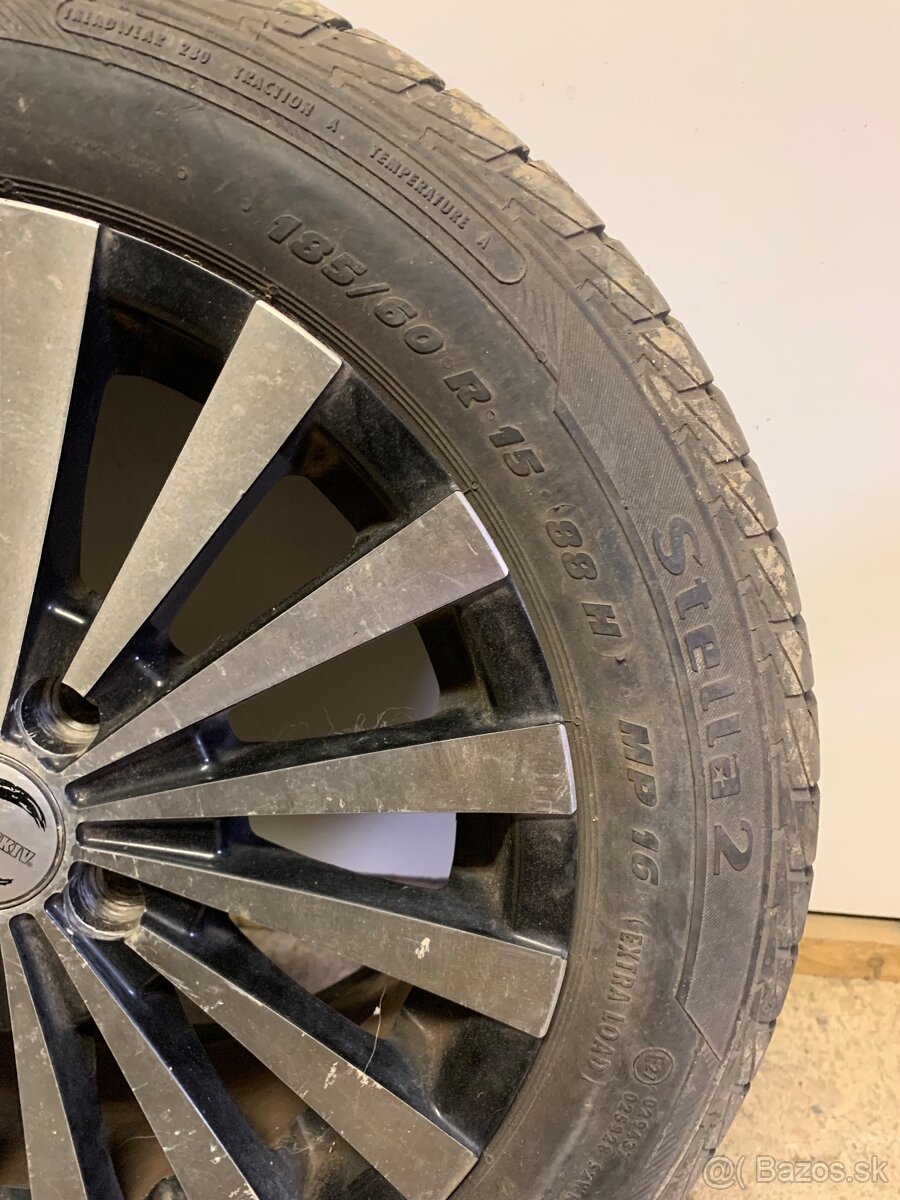 Predám a elektróny s gumami 185/60r15 rozteč4x100 jeden škrabnutý ale rovný