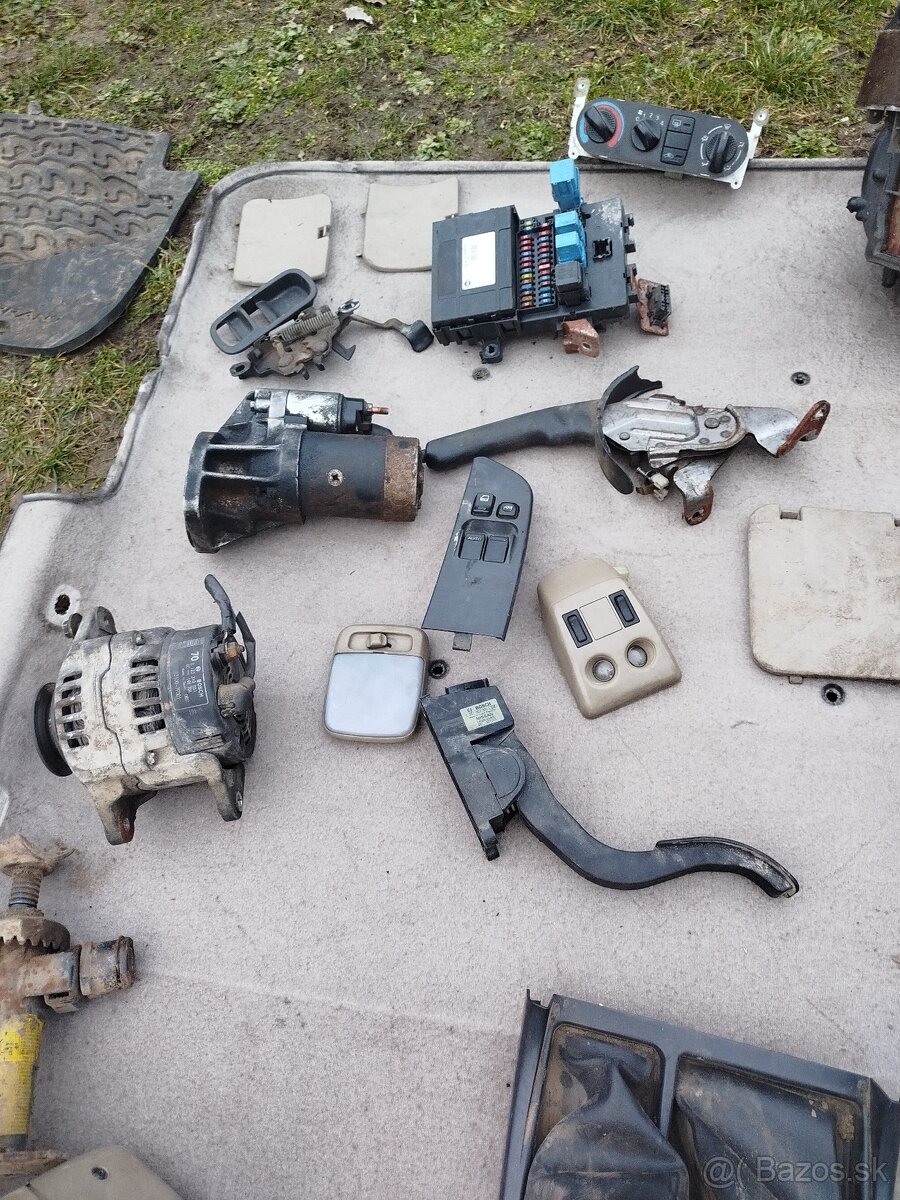 Rozpredám na náhradné diely Nissan Terrano 2.7td, r.v. 2001,vhodné na malotraktor, uaz, aro, nápravy, predný diferenciál, komplet zadná náprava mal by tam byť samosvor , štarter, alternator, komplet zadná náprava, náboje ,tvrdobežky, ťažné, rám , palubná doska, bočné skla, čelné sklo,komplet predné dvere elektrické okná, ochranný rám...