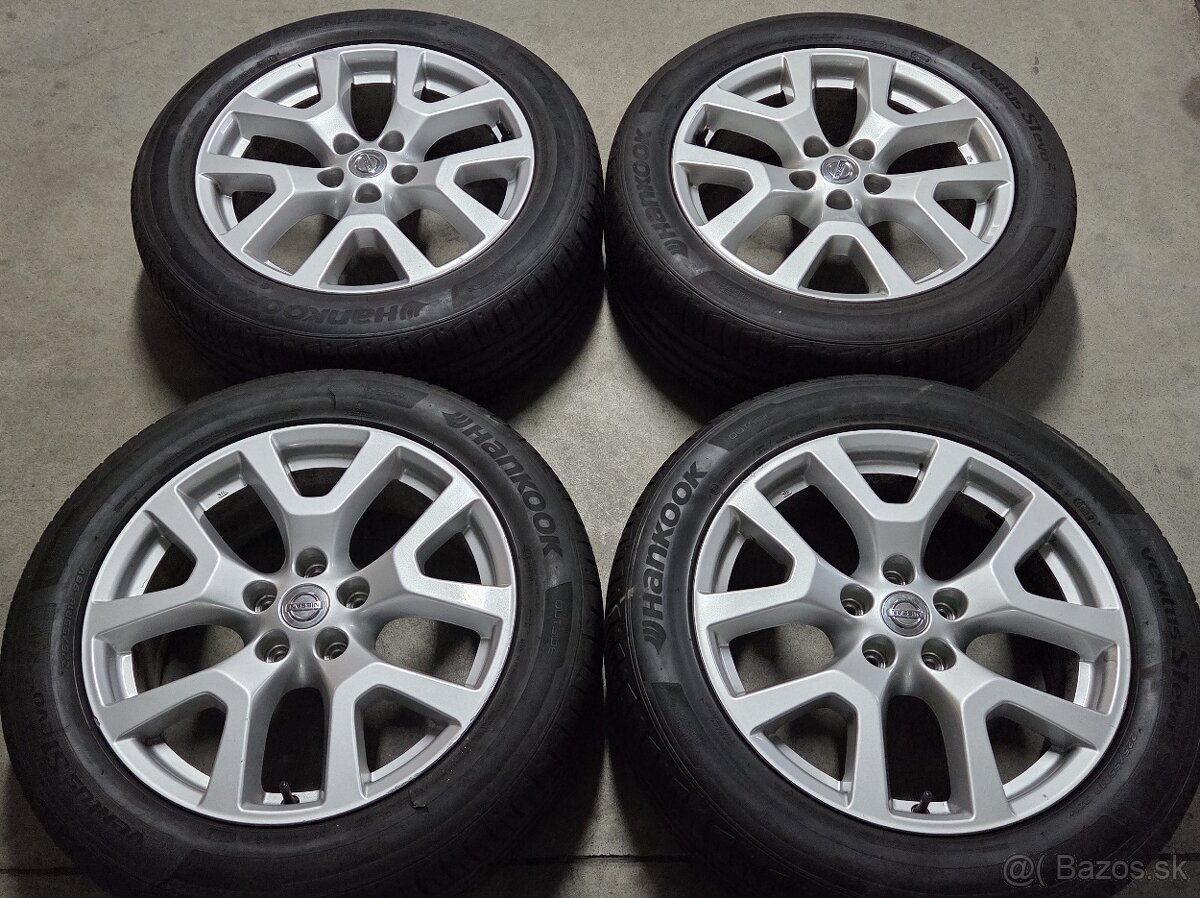 Originálne hliníkové disky zn. NISSAN r18 + letné pneu HANKOOK 225-55 r18, na sezónu - dávam grátis.
